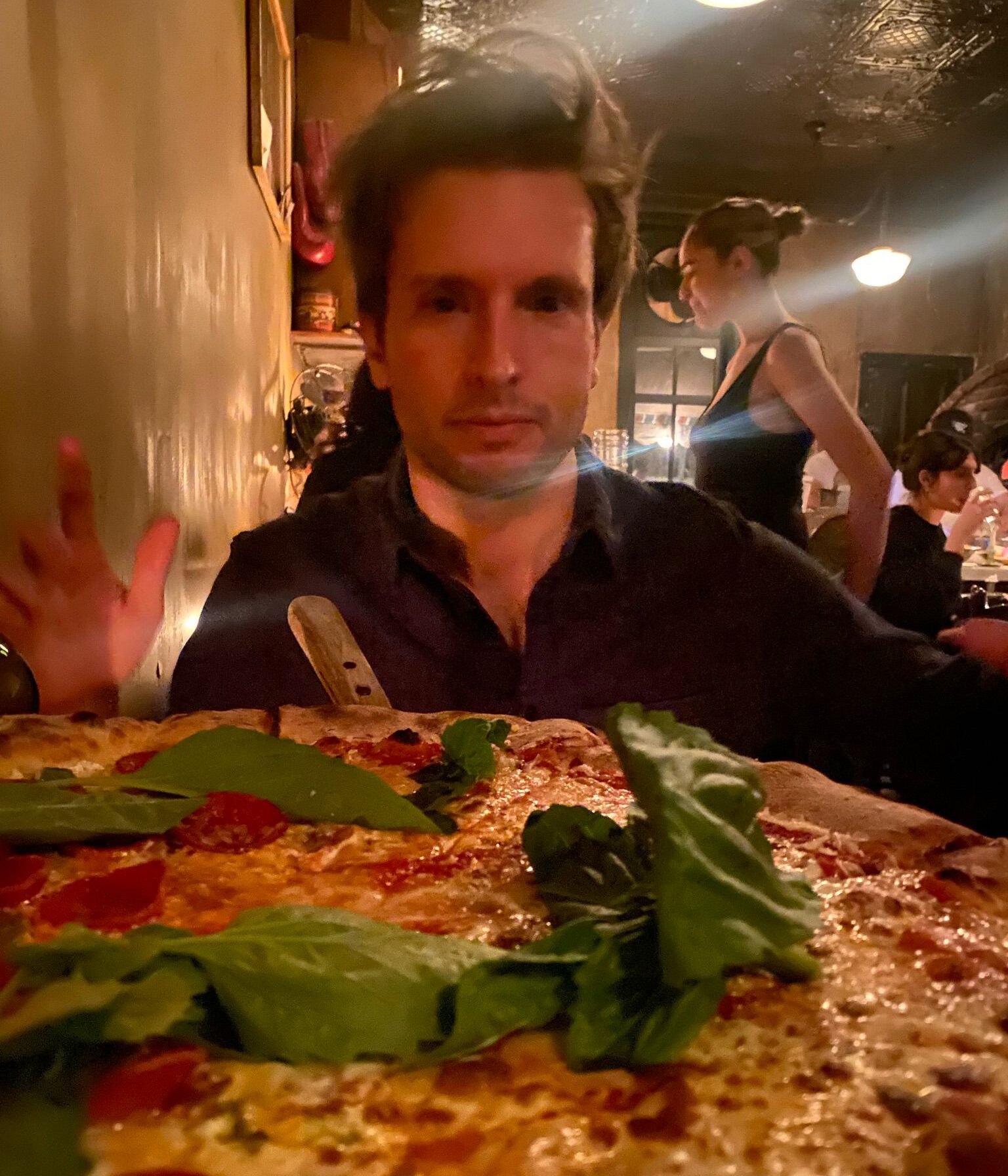 Una de los detalles que más me gustan de NYC es la cálida iluminación de los restaurantes, en Lucali la atmósfera es acogedora. Tuto y yo tenemos una vieja tradición compartiendo pizzas, nos reímos de los tiempos en los que la teníamos que partir con una regla para que estuviesen exactamente iguales.