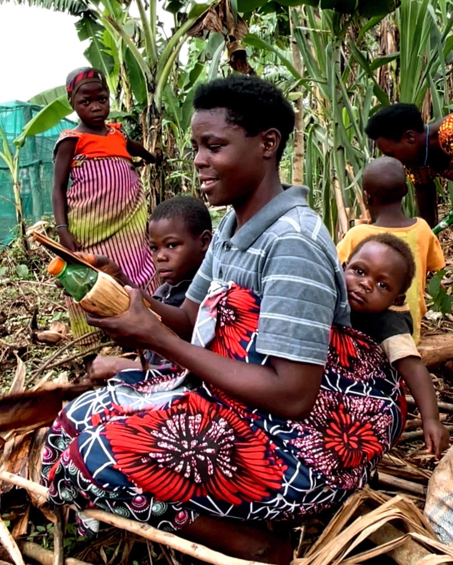 Aprovechando el entorno de las zonas donde abundan las plantaciones plataneras, se utilizan las hojas secas y se usan como tejido vegetal para elaborar las macetas de las plantas. Este sistema permite además ofrecer un empleo digno y seguro a mujeres en riesgo de exclusión de zona, logrando una fuente de ingresos sostenible mediante la realización de estas macetas y en la actualidad han logrado generar empleo para más de 1.500 mujeres de estas zonas de África.